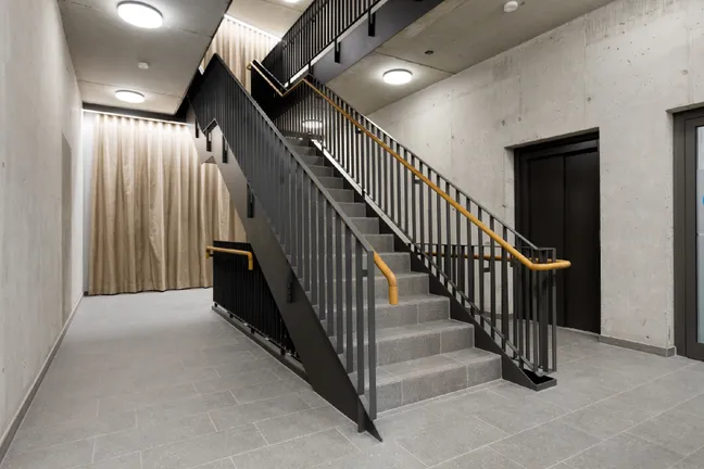 Die modernen sanitären Anlagen sind getrennt für Herren und Damen vorhanden, und barrierefreie WCs befinden sich auf jeder Etage, was den Komfort und die Zugänglichkeit für alle Mieter und Besucher sicherstellt. Diese umfassende Barrierefreiheit betont die moderne und inklusive Ausrichtung des gesamten Gebäudes.