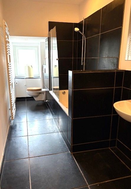 Die Wohnung liegt im ersten Obergeschoss eines gepflegten Altbau-Mehrfamilienhauses. Sie verfügt über ein helles Wohnzimmer, zwei Schlafzimmer, eine Wohnküche, eine Diele, eine Abstellkammer sowie ein Duschbad.