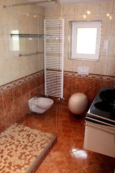 4.) Das Tageslichtbadezimmer wurde frisch saniert und verfügt über einen Doppelwaschtisch, ein WC, ein Bidet, eine (sehr große) Dusche sowie über eine praktische Handtuchheizung (siehe Fotos).